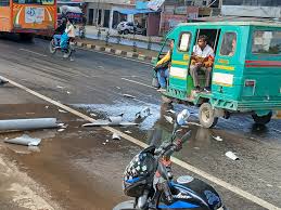 निर्माणाधीन इमारत से नीचे गिरा पाइप, सड़क पर खड़ी कार बुरी तरह क्षतिग्रस्त—मैनेजर बाल-बाल बचे